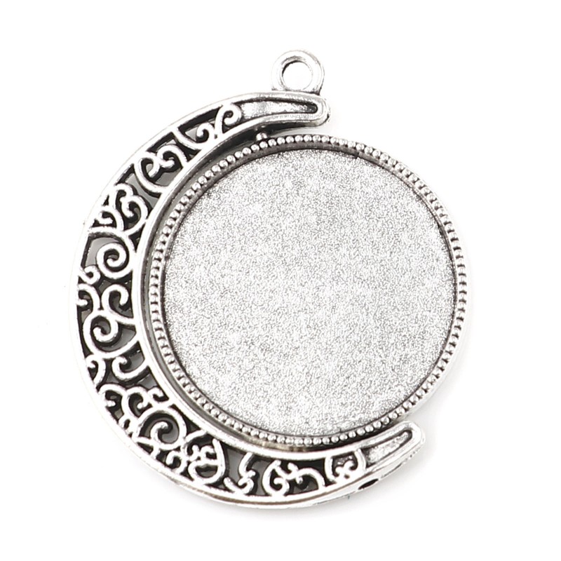 Pendentifs Supports à Cabochons Galaxie en Alliage de Zinc Demi-Lune Argent Rotatif Fleurs Creuses .