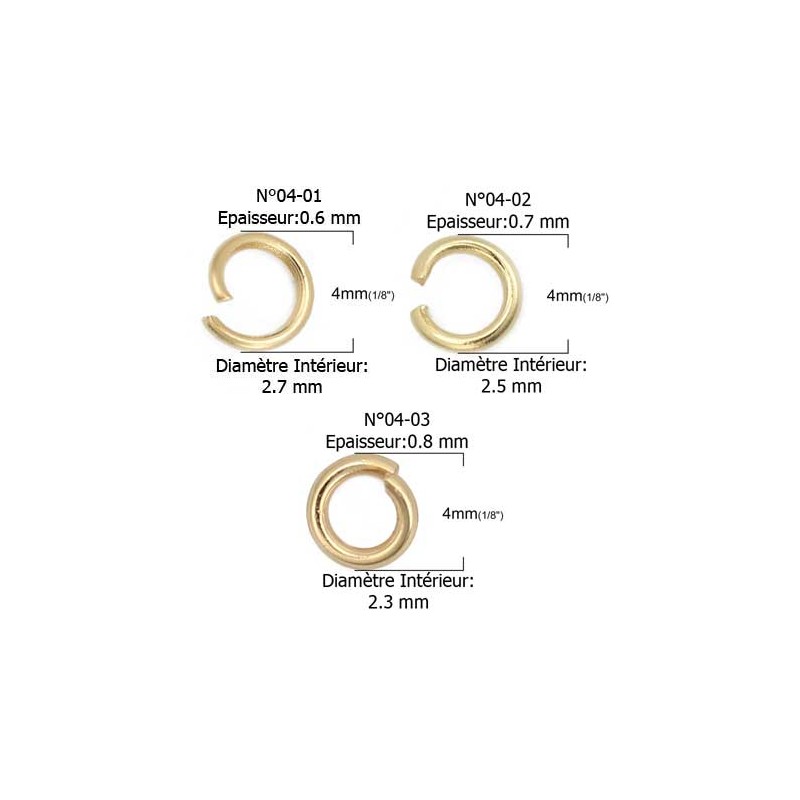 10 Anneaux de jonction ouvert 04 mm . N°04-02:...