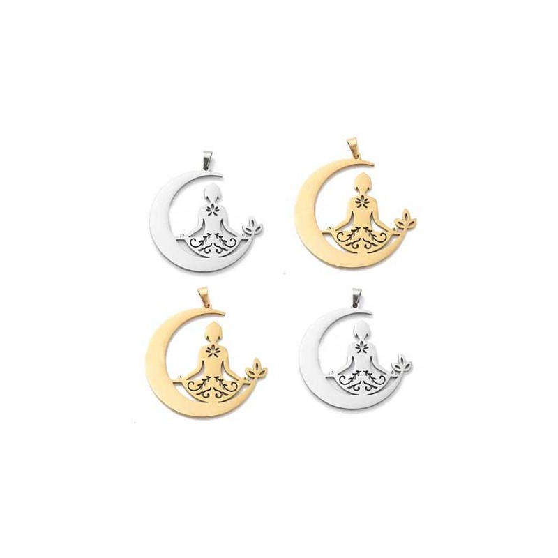 Breloque Lune Yoga Lotus .
