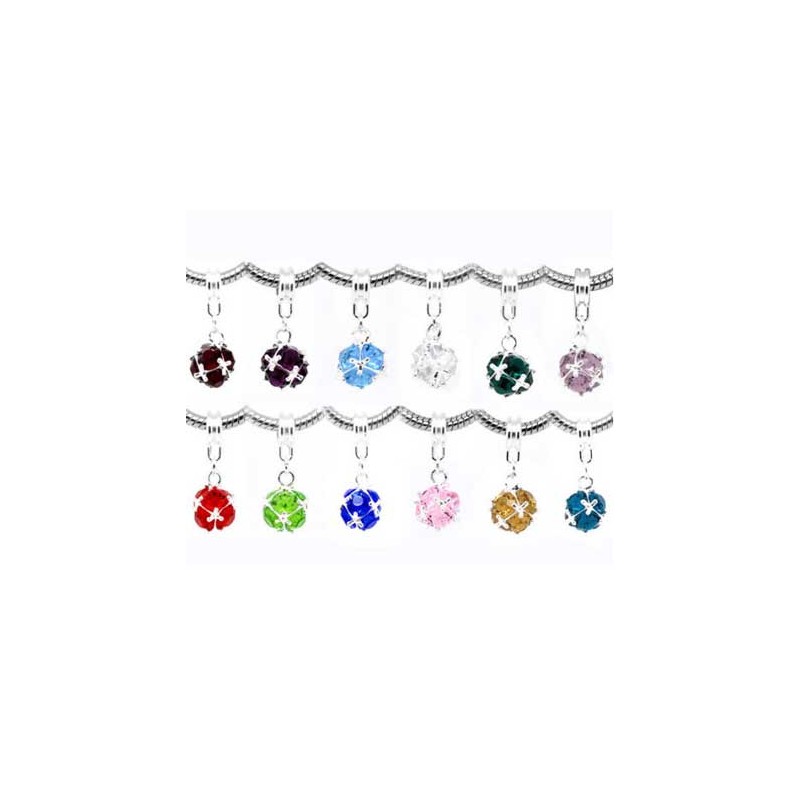 Pendentifs Loulou Perlou Perle Dangle à Gros Trou au Style Européen Pierre de Naissance Avril en Cuivre Balle Argenté à Strass Couleur .