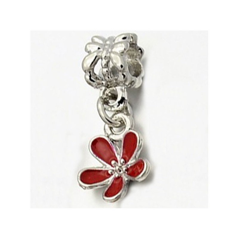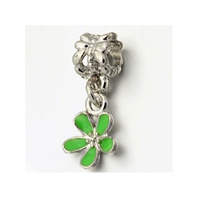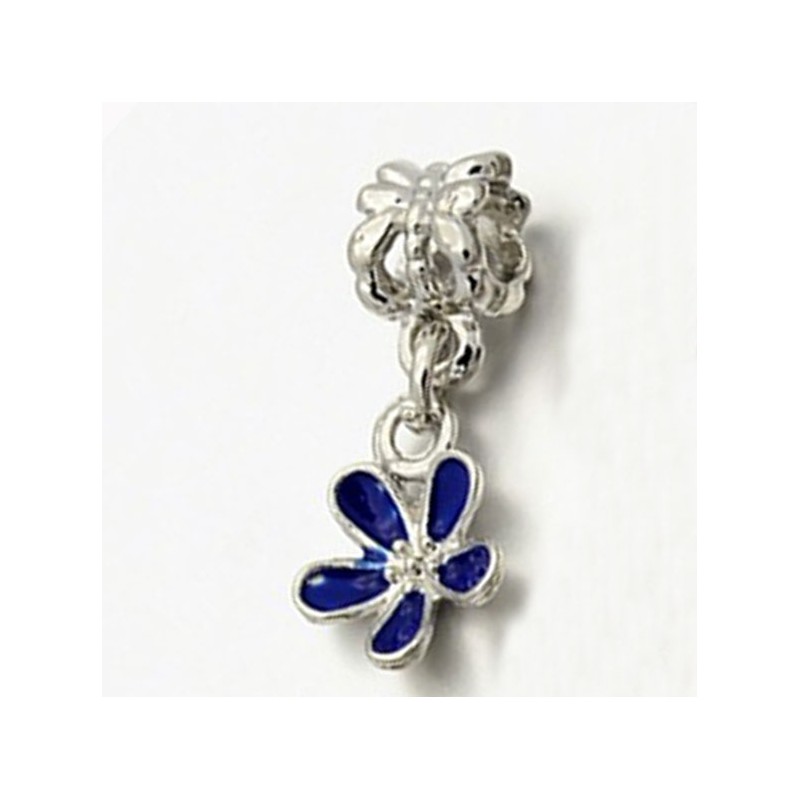 Pendentifs Loulou Perlou Perle Dangle à Gros Trou au Style Européen alliage platine fleurs émaillé 25mm .
