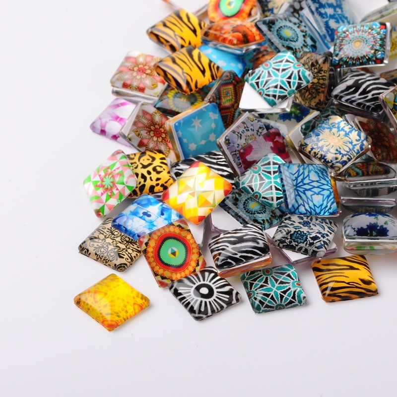 Cabochons carrés assortis en verre de 20mm x 20mm, prêt à coller .