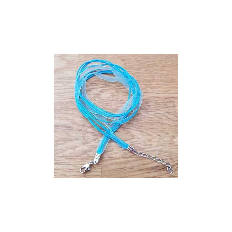 Tour de cou composé d'un ruban organza de 7 mm et de 3 cordons ciré de 1 mm .