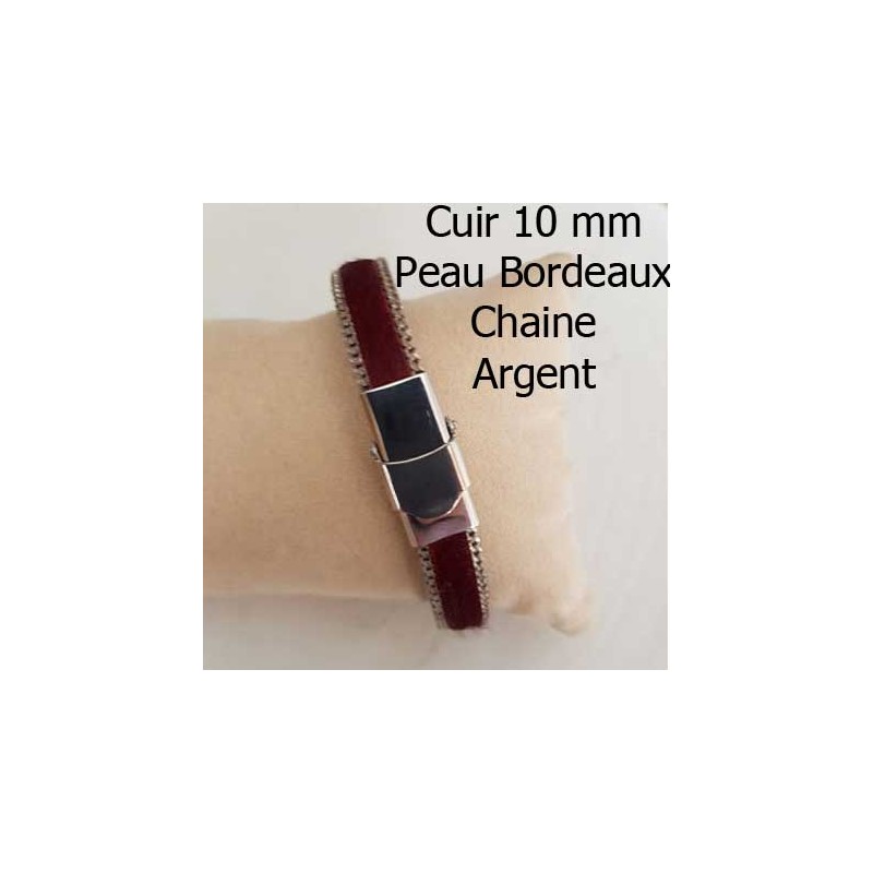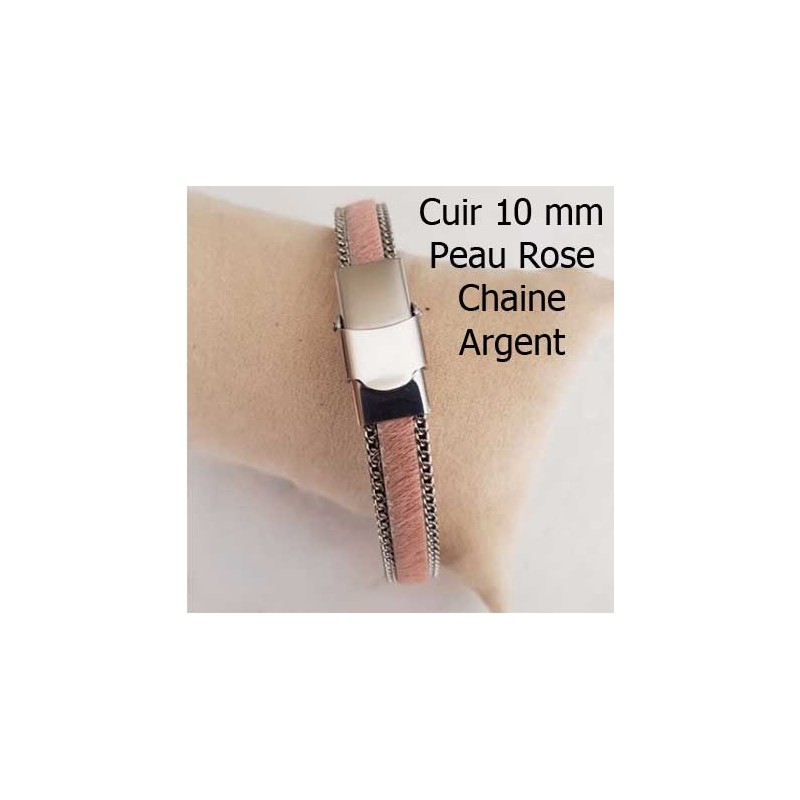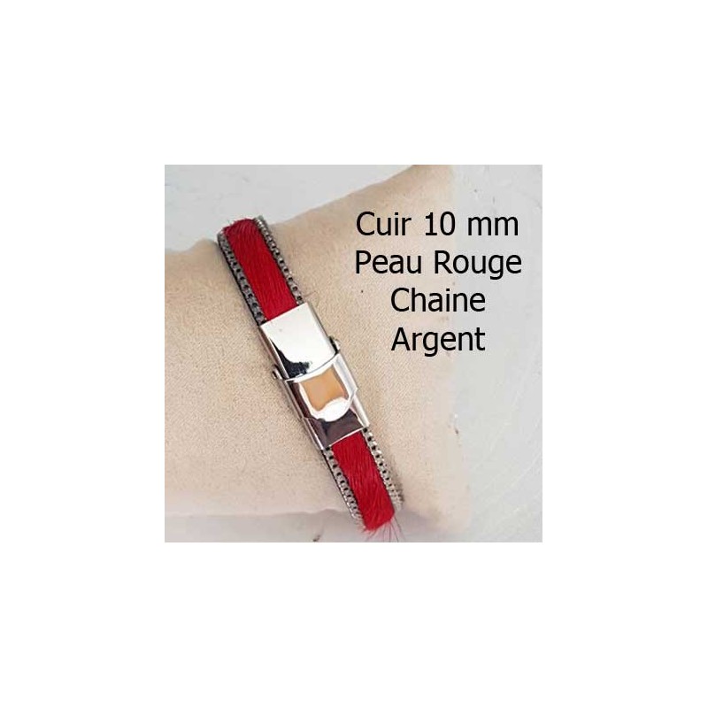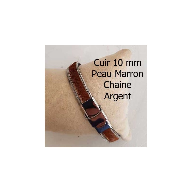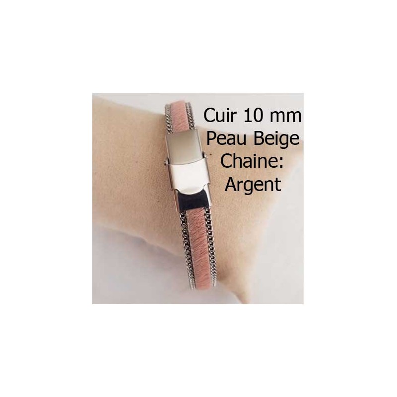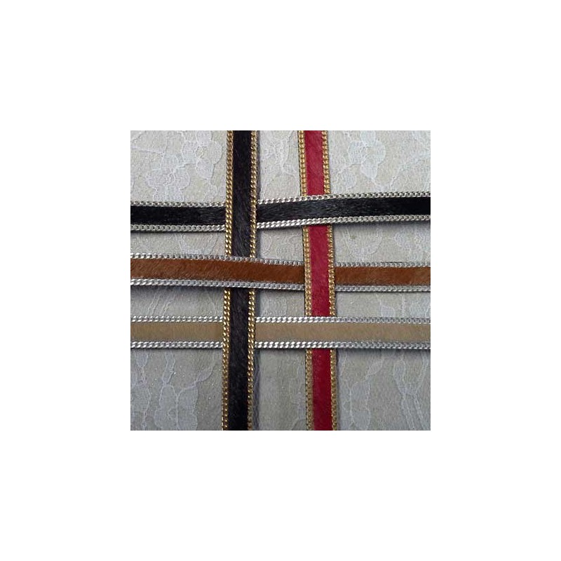 Cuir Vachette uni ou imprimé avec une chainette collé Argent ou Doré .