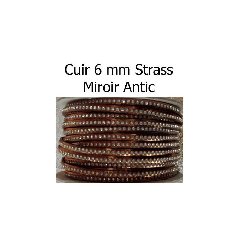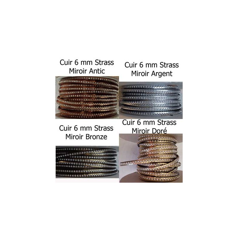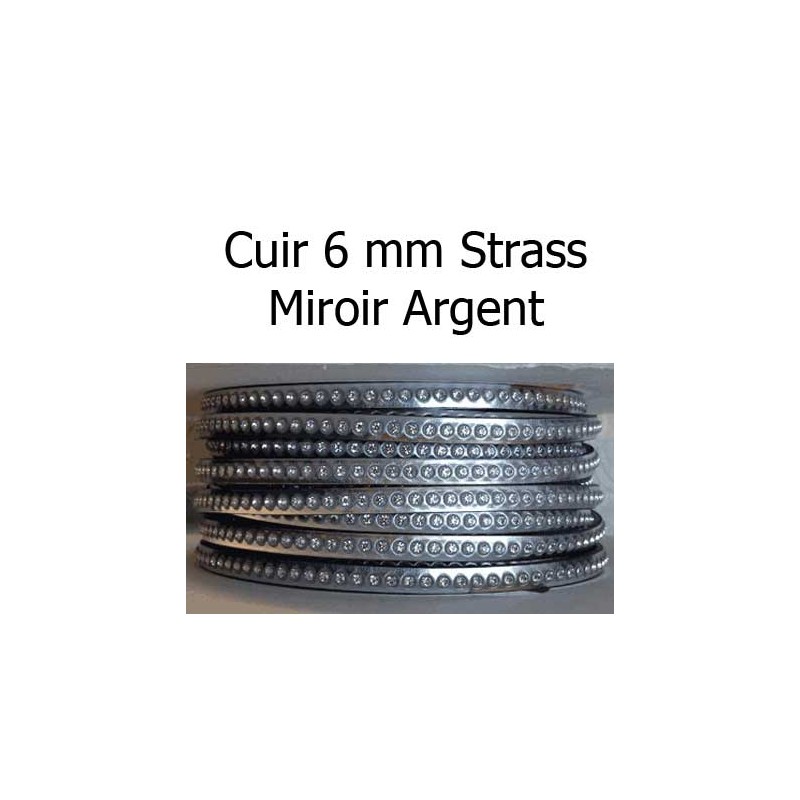 Cuir Veau MIROIR de 6mm avec Strass cristal de SWAROVSKI base transparente.