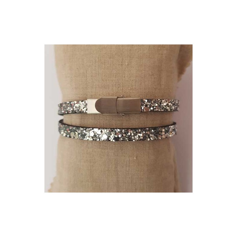 Cuir 06 mm Glitter Pailleté Doublé Cuir .