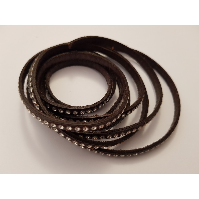 Cuir Strass Swarovski 06 mm Soldé 1 Mètre N°01Marron Foncé
