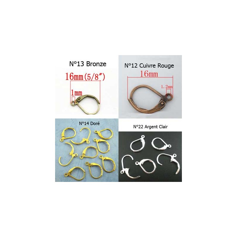 Support Boucle d'oreille Dormeuse N°12 en métal argenté 16 X 10 mm .