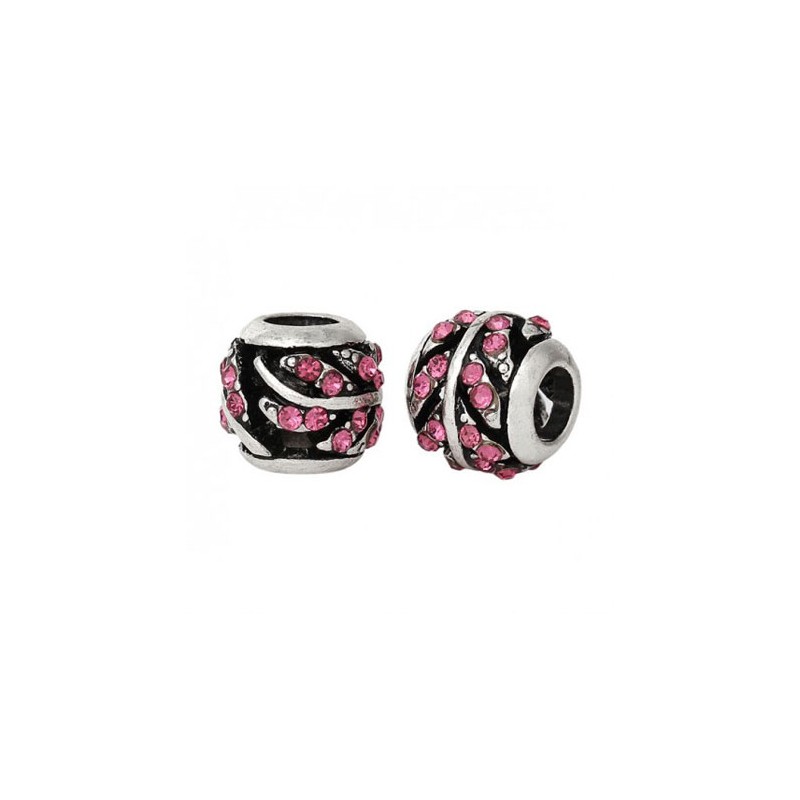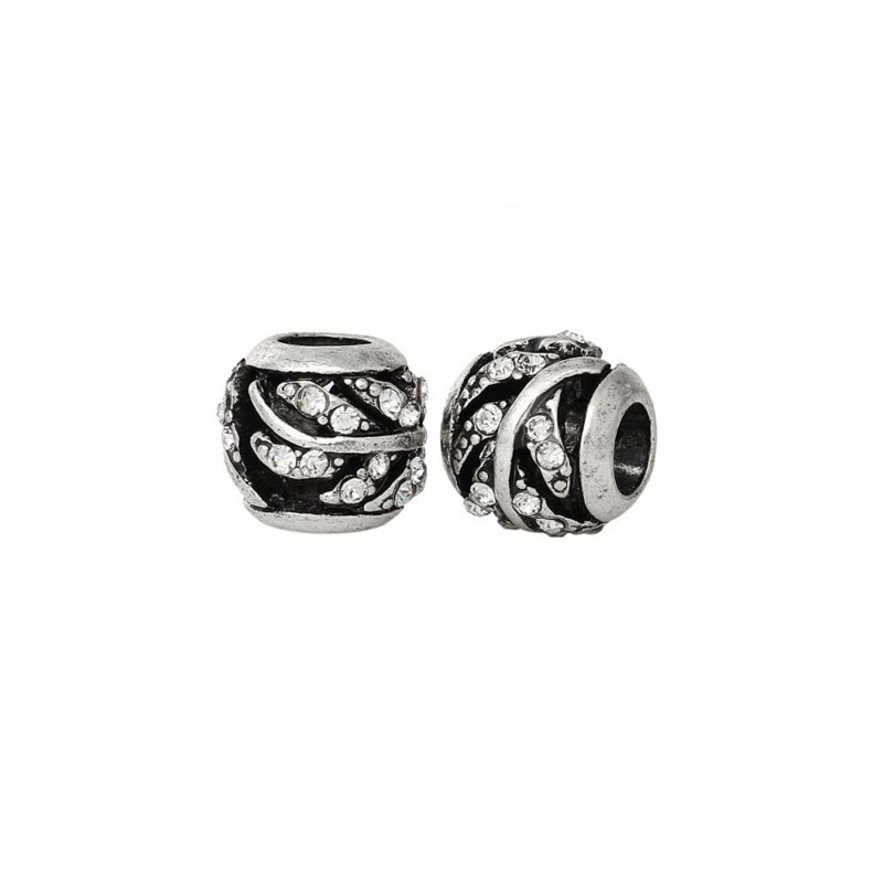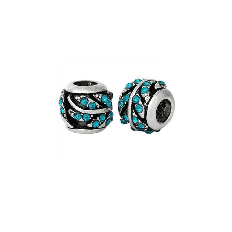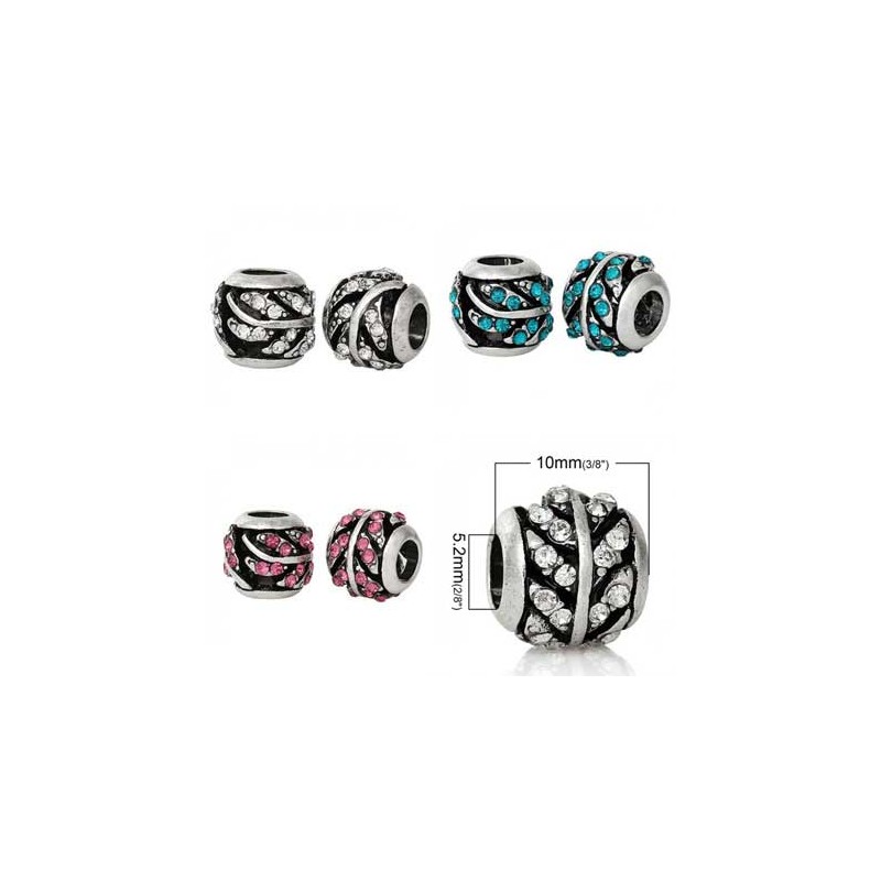 Perles loulou perlou à Gros Trou au Style Européen en zinc rond argent antique et strass de couleur .