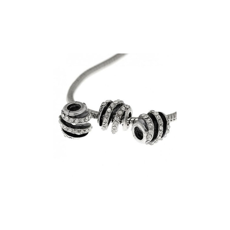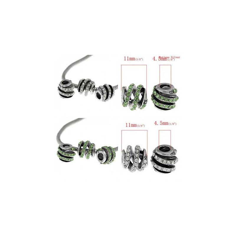 Perles loulou perlou à Gros Trou au Style Européen en zinc colonne argent antique et strass de couleur .