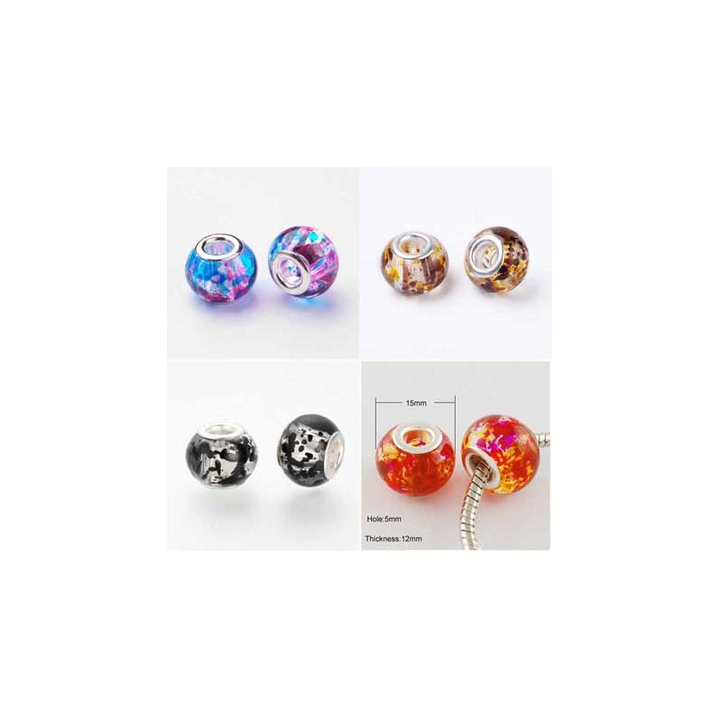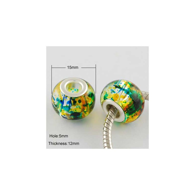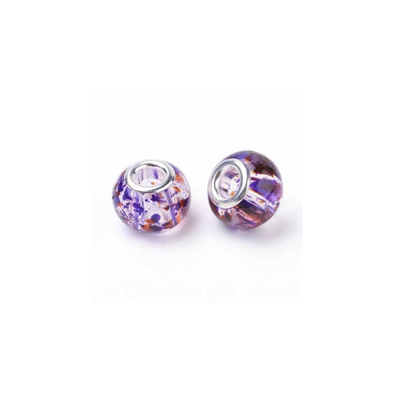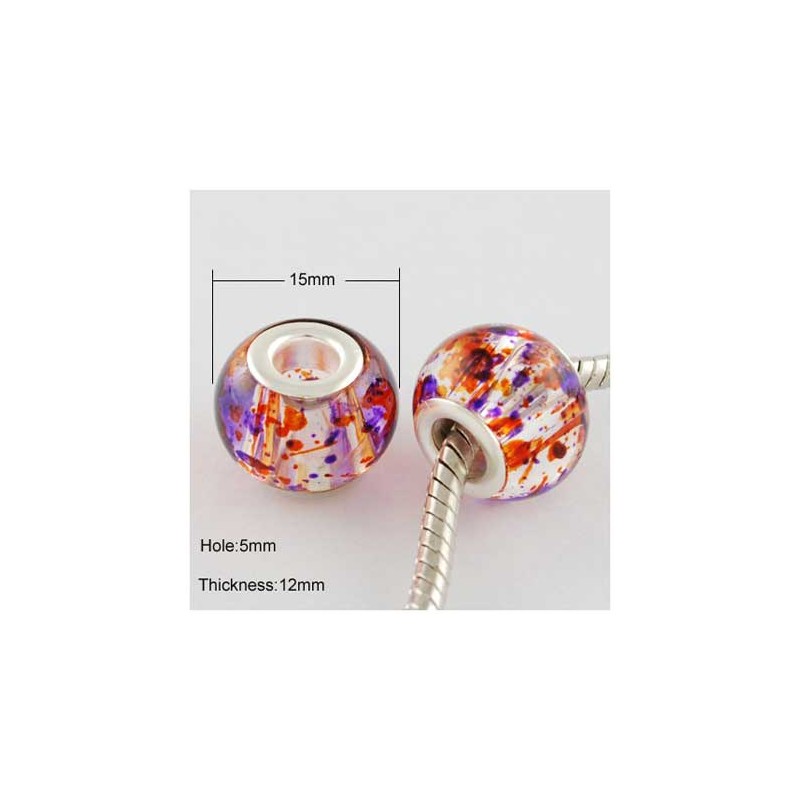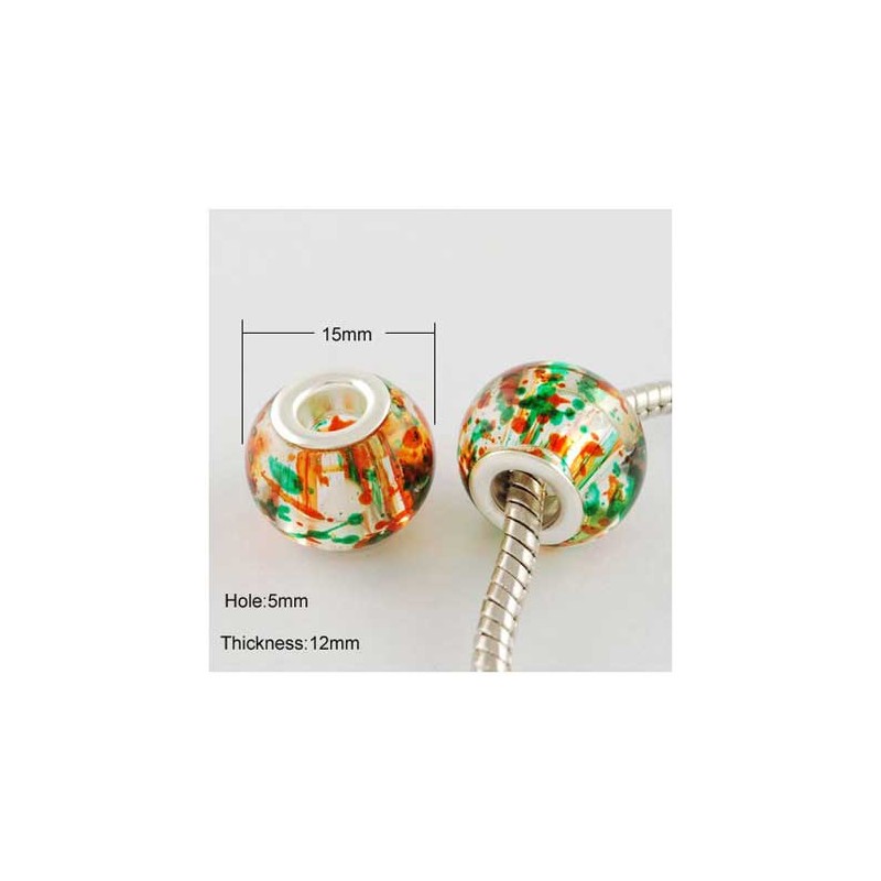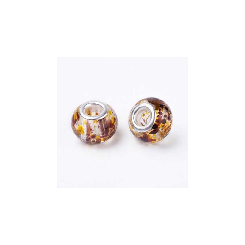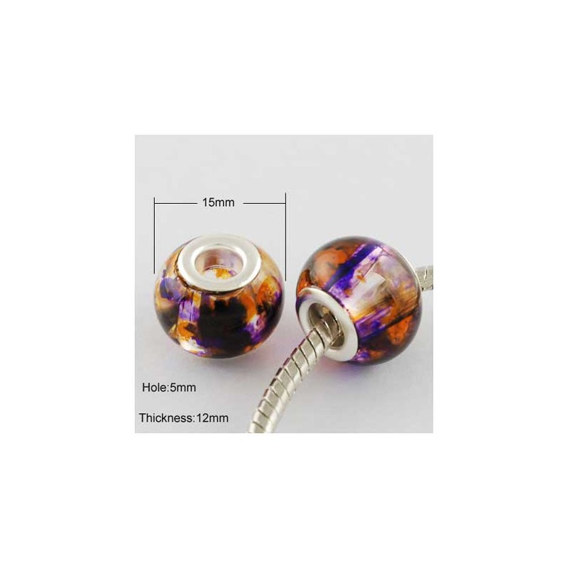 Perles loulou perlou européennes en verre peint, avec des noyaux de cuivre d'argent, Perles avec un grand trou .