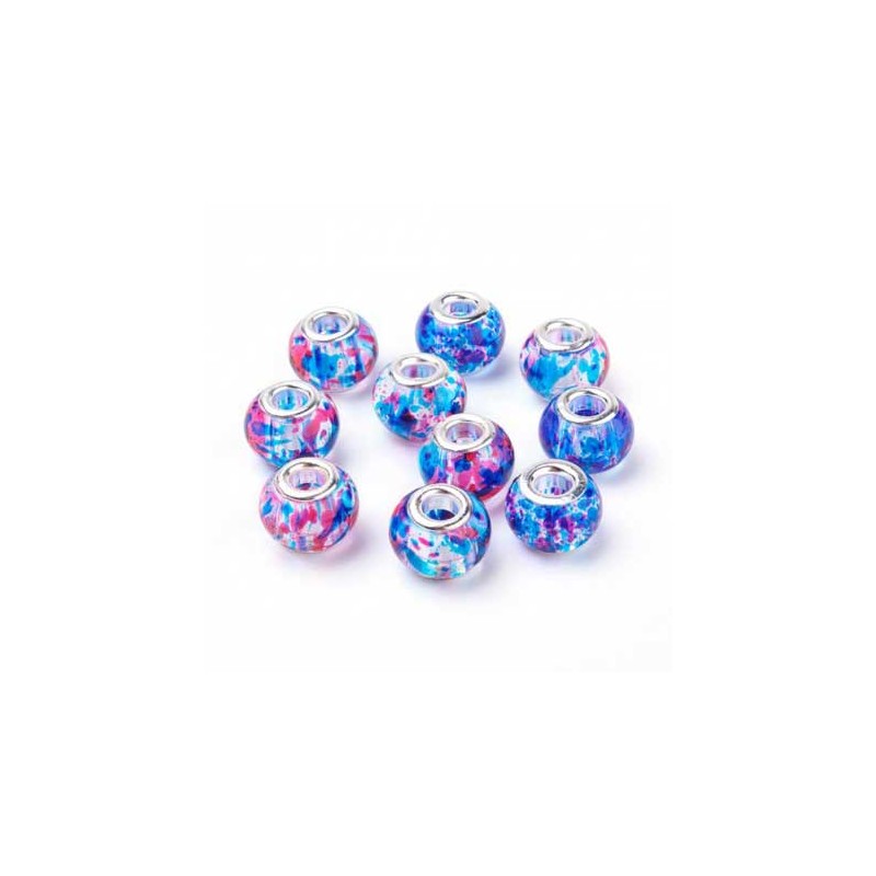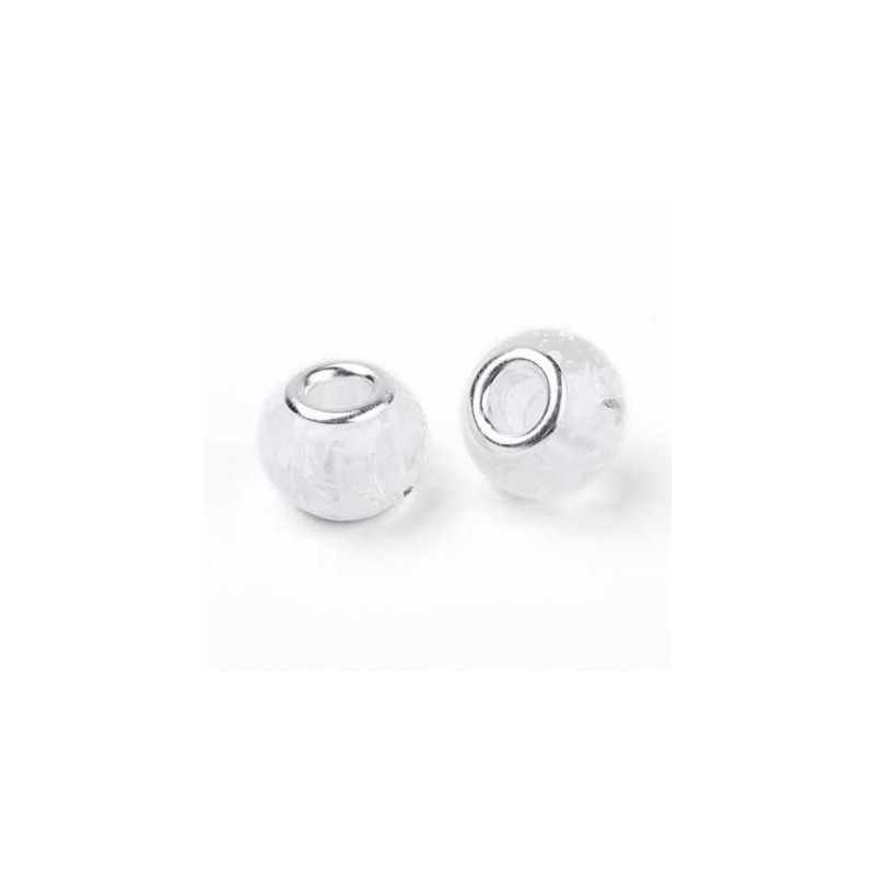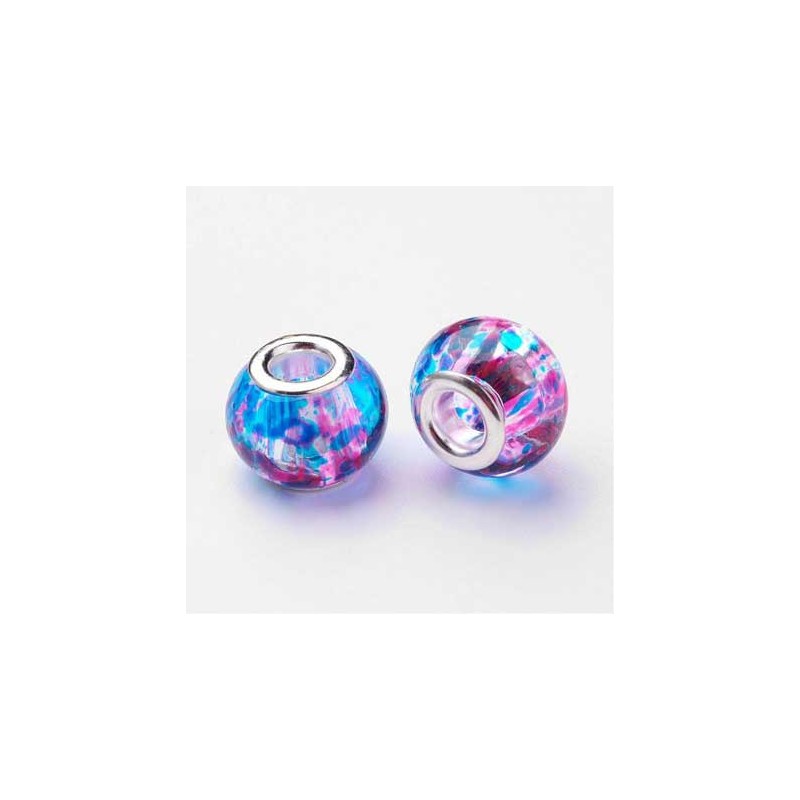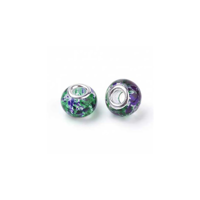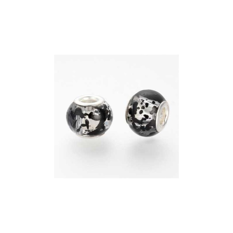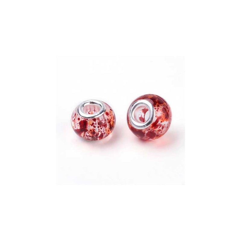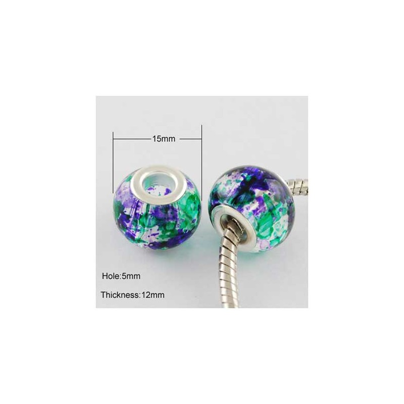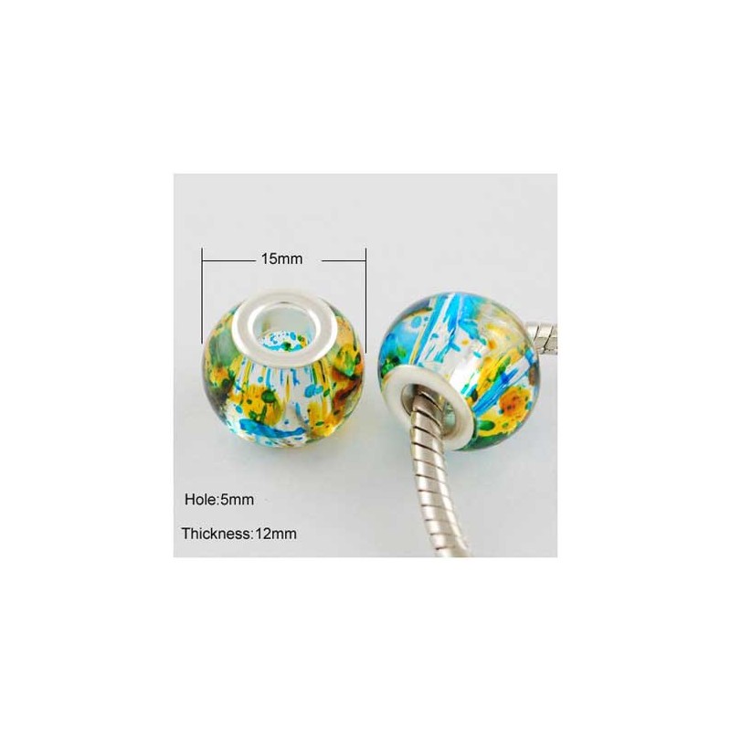 Perles loulou perlou européennes en verre peint, avec des noyaux de cuivre d'argent, Perles avec un grand trou .