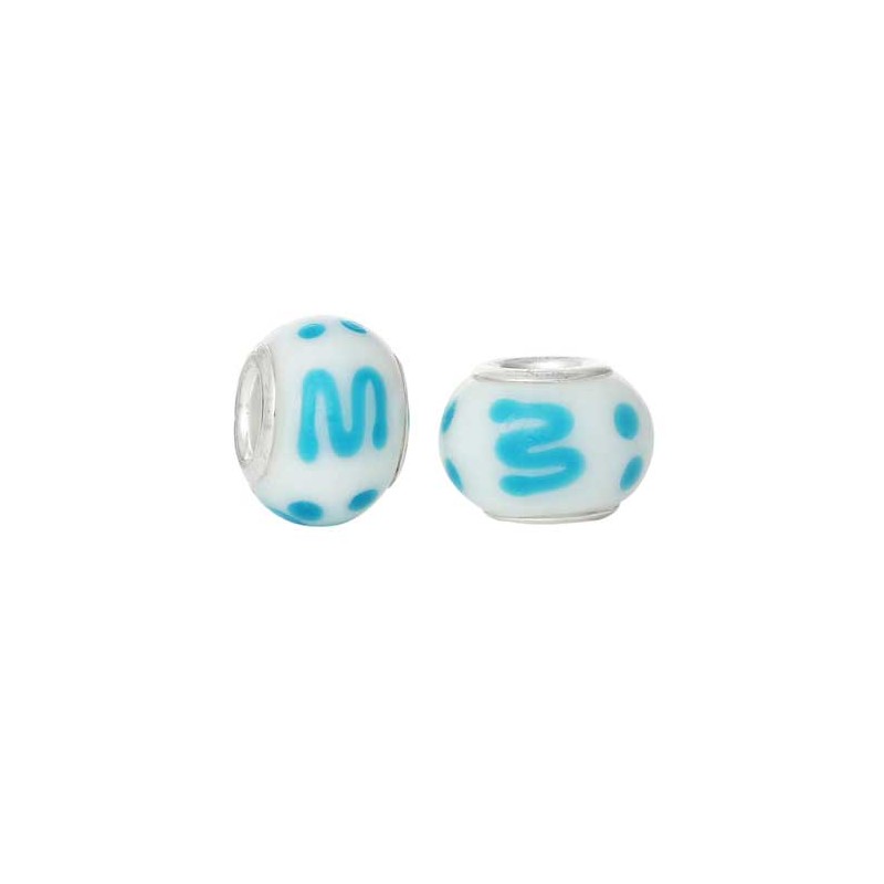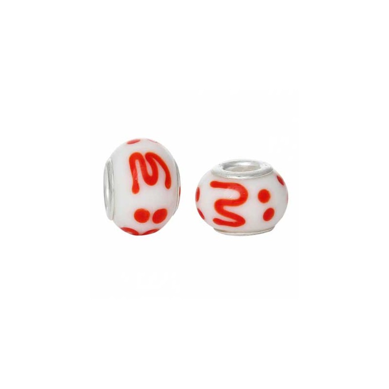 Perle en verre, forme boule de 14mm de diamètre...