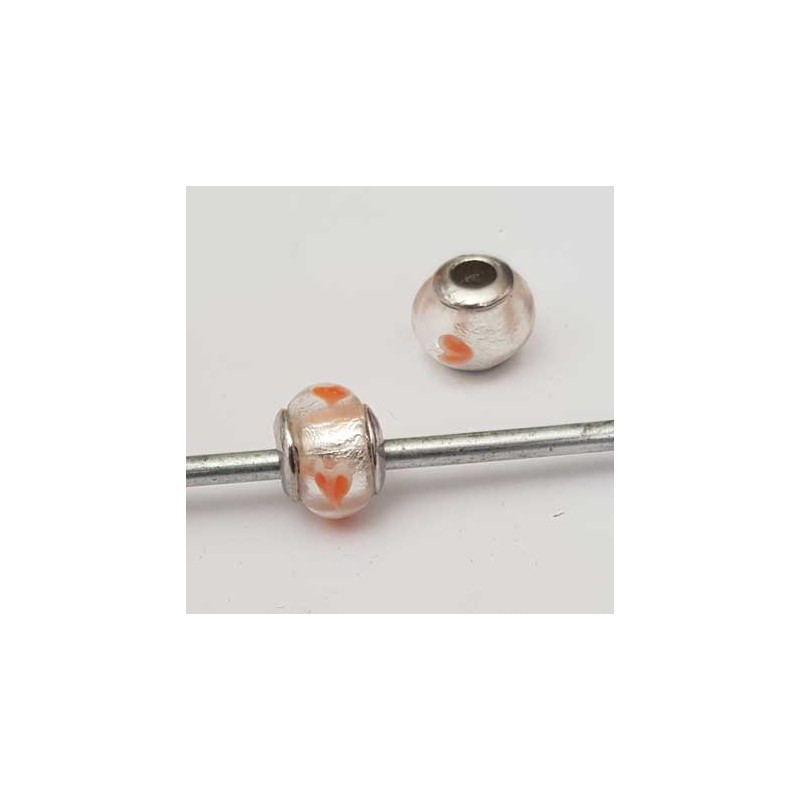 Perle en verre, forme boule de 14mm de diamètre environ.