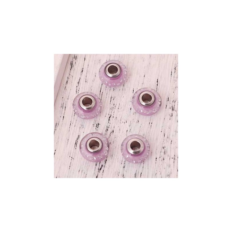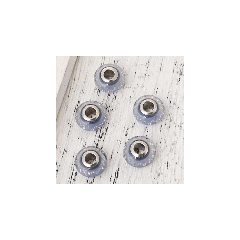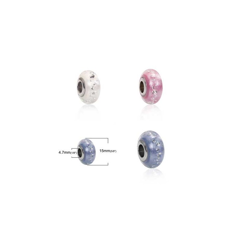 Perles à Gros Trou au Style Européen en Verre & Zircone Avec Noyau en 304 Acier Inoxydable Argent Mat .